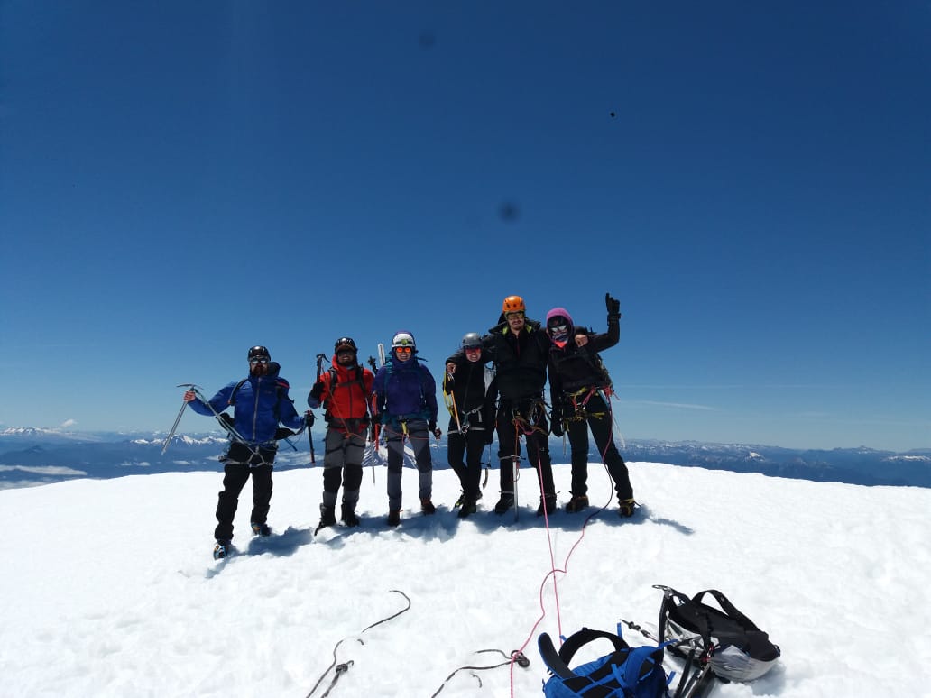 Buen pronóstico, poco viento, mucho calor. Sin grietas visibles, poca pendiente este mes. Poca escalada. 6 hrs de ascenso 3 descenso