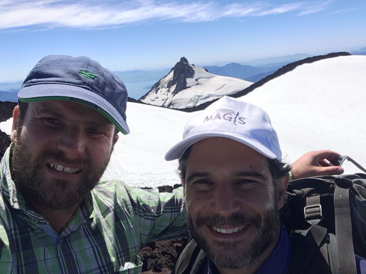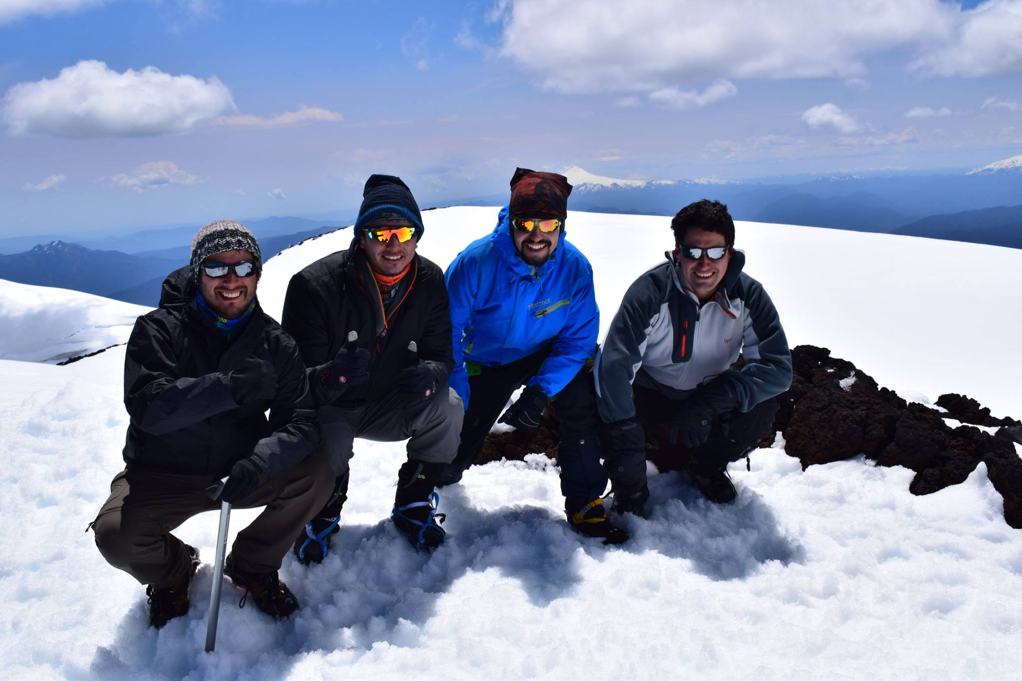 Luego de escalar al vecino Choshuenco, nos dirigimos hacia el Mocho,escalando por su cara oeste desde el plateau entre los 2 volcanes, llegando en 1 hra a la cumbre norte del Mocho para luego cruzar el cráter hacia la cumbre principal. Descenso por la normal hacia el refugio completando 15 hrs camp to camp.