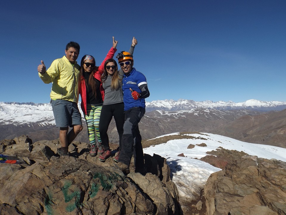 Partimos a las 8:30 desde San Carlos de Apoquindo. Había nieve desde Cancha de Carrera, muy bonito, aunque la subida un poco pesada por lo mismo. No necesitamos crampones ni raquetas. Un día muy soleado. Demoramos 6 horas en llegar a la cumbre, y casi 10 en total.