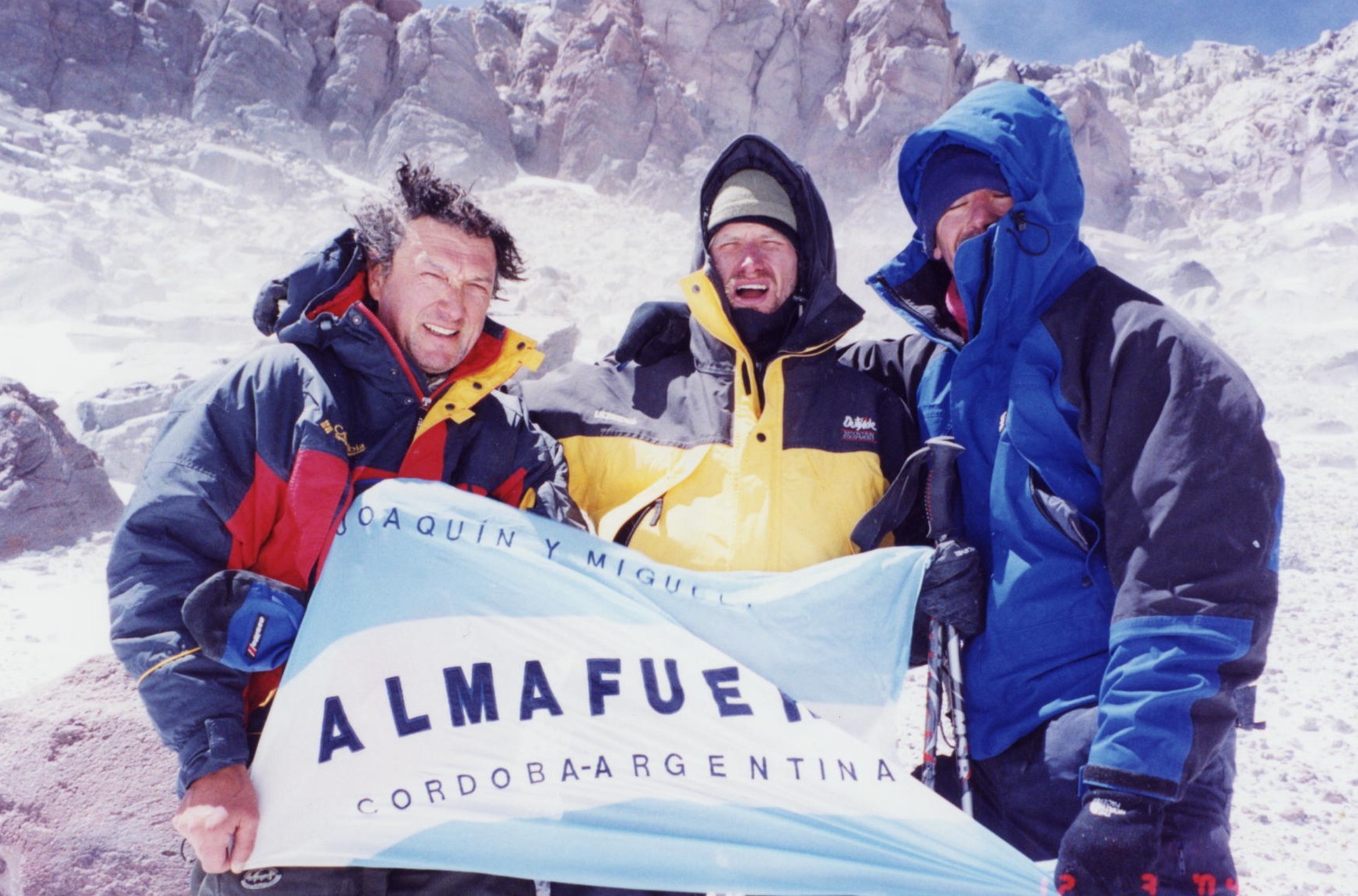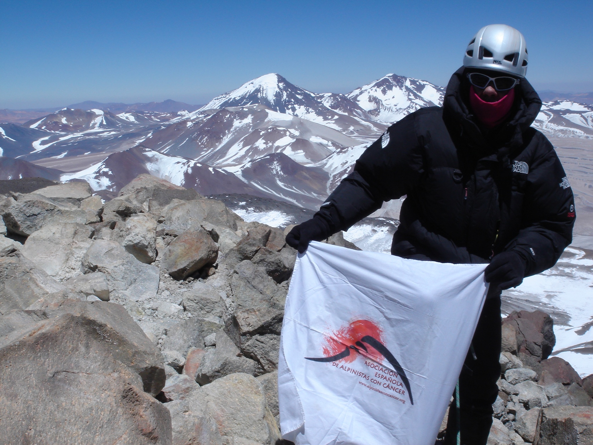Dura ascensión, todos los miembros de nuestro equipo, cinco, hicimos cumbre, divididos en dos grupos. Viento moderado y muy poca nieve. Caminando desde Atacama y pernostando en las literas del Refugio Tejos. Casi diez horas de subida.