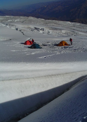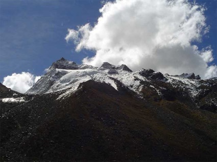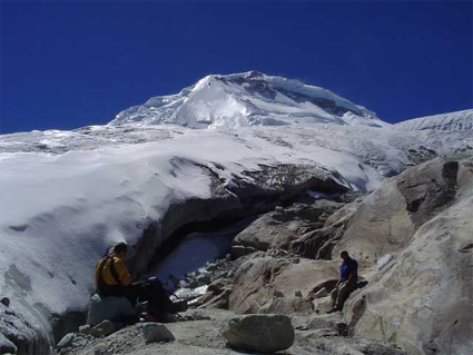 Puesta de sol sobre el Huascaran desde el pueblo de Yungay