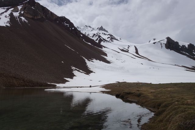 Preciosa ruta recorrida en compañía de mi esposa Paula y mi hijo Nicolás. Muy verde y abundante agua en los sectores de vegas. En el trayecto de subida por el valle del río Yeso se encuentran rocas con incrustaciones de fósiles marinos del período Jurásico tardío y Cretácico temprano (135 a 150 millones de años atrás). Tuvimos la fortuna de ver una pareja de preciosos piuquenes (ganso andina) en las vegas de la laguna.
