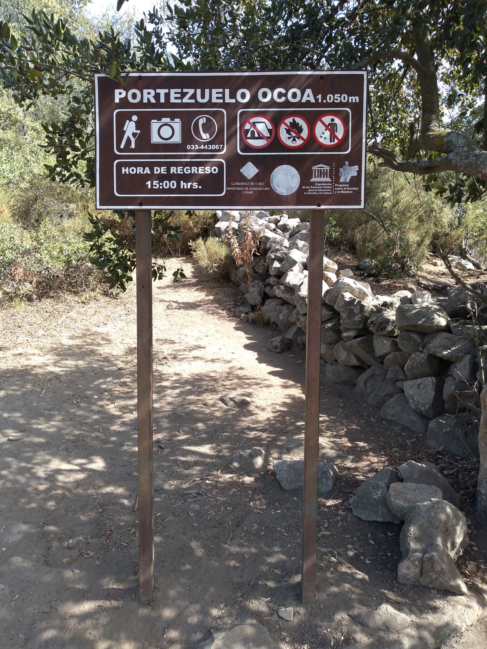 - En la caseta de Conaf se puede pedir un folleto con un mapa de la zona. Este folleto también debiera incluir el número de teléfono del guardaparque, a quien se puede llamar en caso de emergencia.